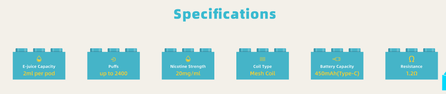 The Leco utilizes a 2mL refillable pod with a convenient side-fill design, minimizing the risk of spills and leaks. The pods are compatible with both freebase and nicotine salt e-liquids, catering to a wide range of preferences. The 1.2Ω mesh coil ensures excellent flavor delivery and smooth vapor production, enhancing your overall vaping experience.
