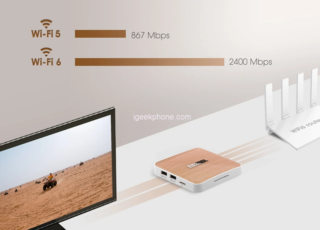 The MECOOL KM6 Deluxe is a powerful Android TV Box that provides users with a premium viewing experience. With its 4GB RAM and 64GB ROM, it has ample storage space for all your favorite apps, games, and movies. The device runs on the latest Android TV 10.0 operating system, ensuring that users have access to the latest features and updates. Whether you’re streaming content from your favorite platforms or playing games, the MECOOL KM6 Deluxe delivers high-quality visuals and smooth performance. It’s a great option for anyone looking to upgrade their home entertainment setup.
