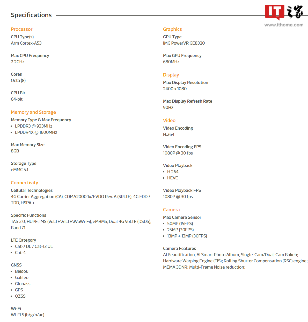 The Mediatek Helio G36’s octa-core Arm Cortex-A53 processor delivers a 2.2GHz peak frequency for entry-level gaming smartphones. The IMG PowerVR GE8320 GPU delivers a combination of performance and power efficiency, supporting up to 8GB of LPDDR4x memory.