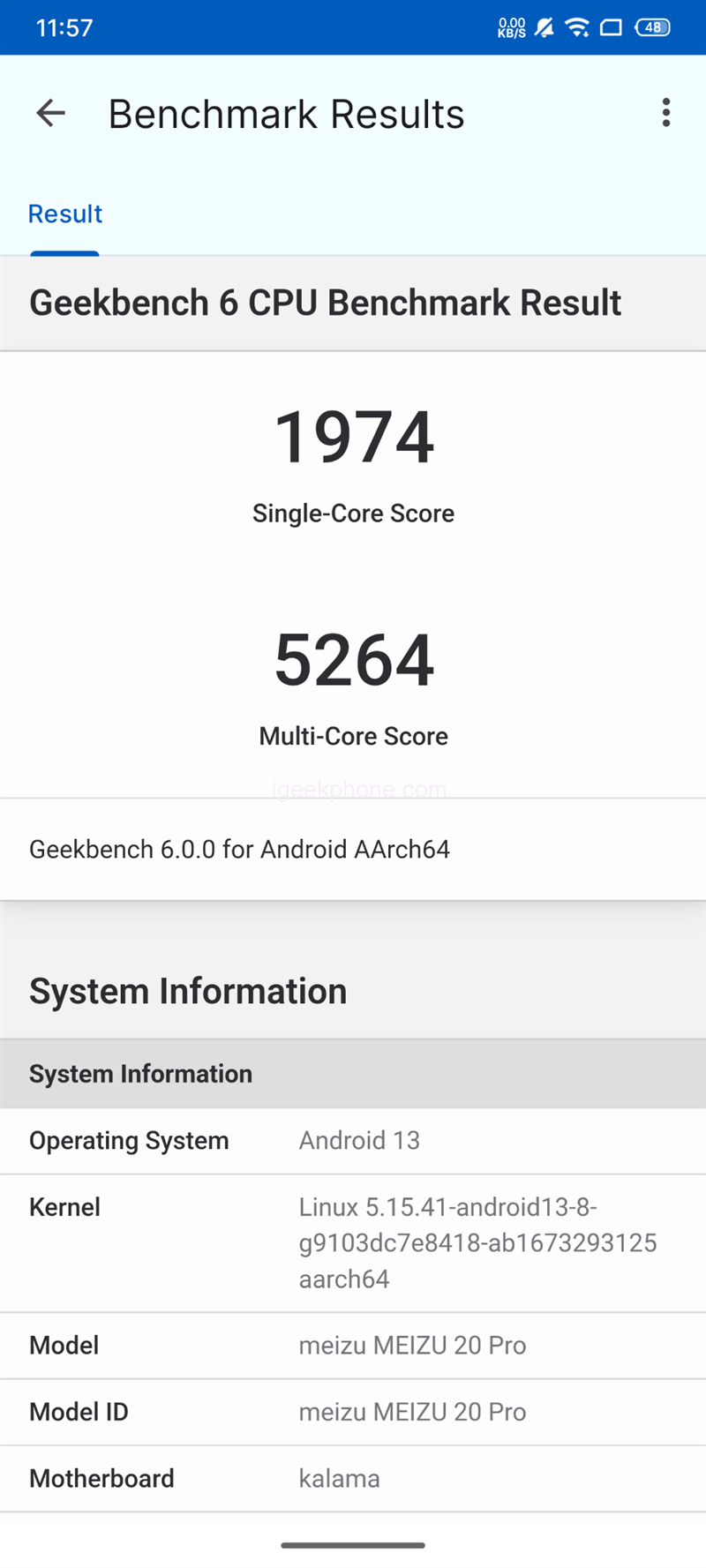 We also used the latest GeekBench6 for testing, with a single-core score of 1974 and a multi-core score of 5264.