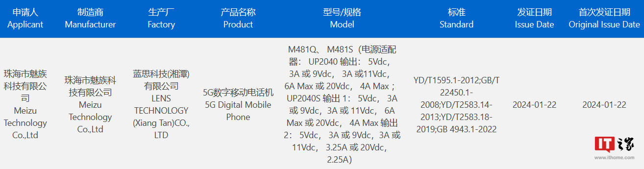 Meizu 21 Pro has obtained 3C certification and network access license, the model is M481Q, M481S, the certificate shows that the maximum support 80W fast charge, produced by Lens Technology. Blogger @Digital Chat said at the time that it would be equipped with an “extremely rare” 2K screen plus a large ultrasonic fingerprint.