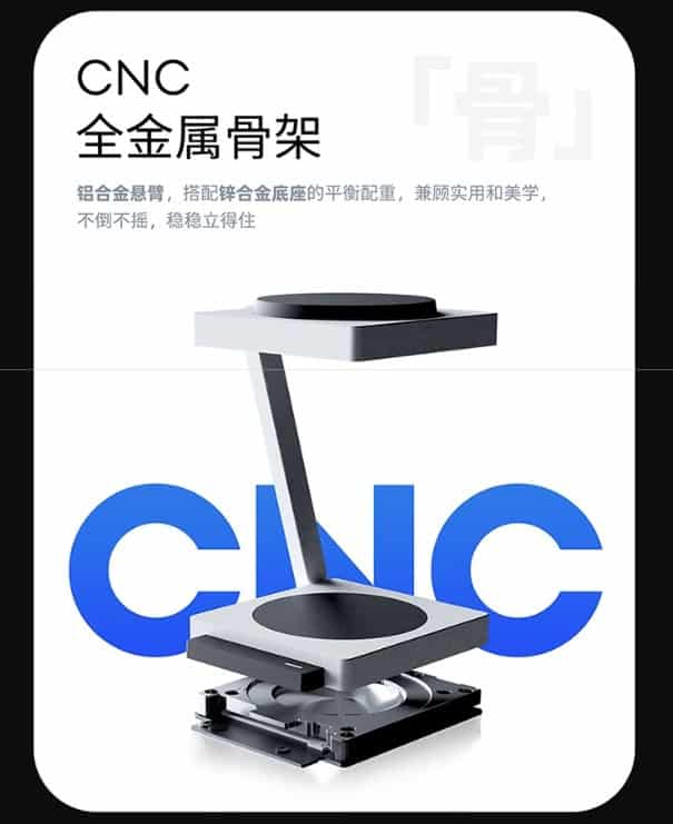 According to Meizu, this charger continues the design concept of the 120W desktop Super Charging Station Pro and the 67W GaN Small Power Station Trendy Charging. It adopts a minimalist black and white design, with a relatively restrained appearance. It does not use large R corners or gradient color elements. It features a CNC all-metal frame, equipped with an aluminum alloy cantilever and a zinc alloy base. It is claimed to be “neither standing nor swaying”.