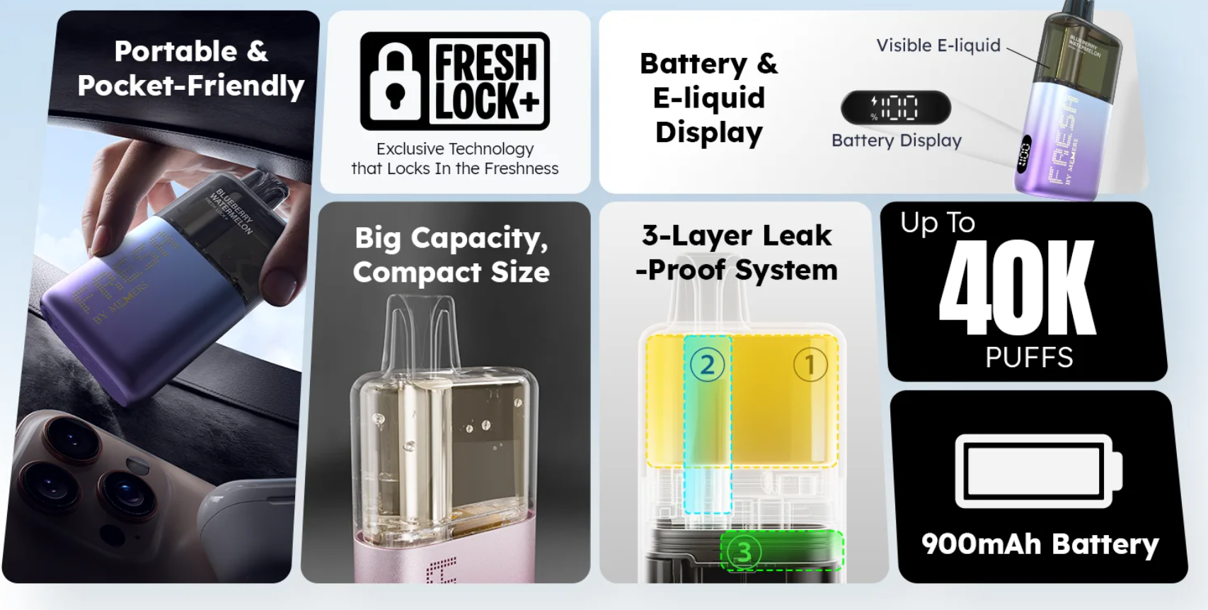 What sets it apart is its advanced Fresh Lock+ Technology, which automatically seals the e-liquid channel after a short period of inactivity. This prevents oxidation, maintains flavor quality, and ensures that each puff tastes as fresh as the first.