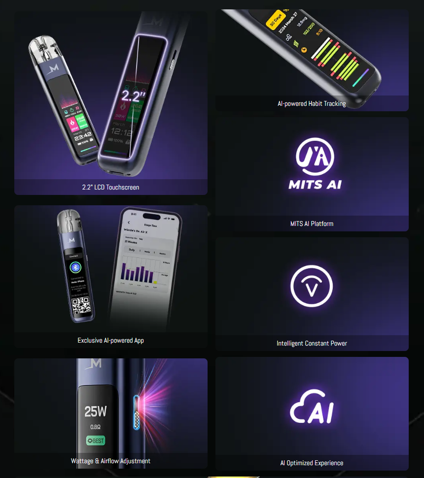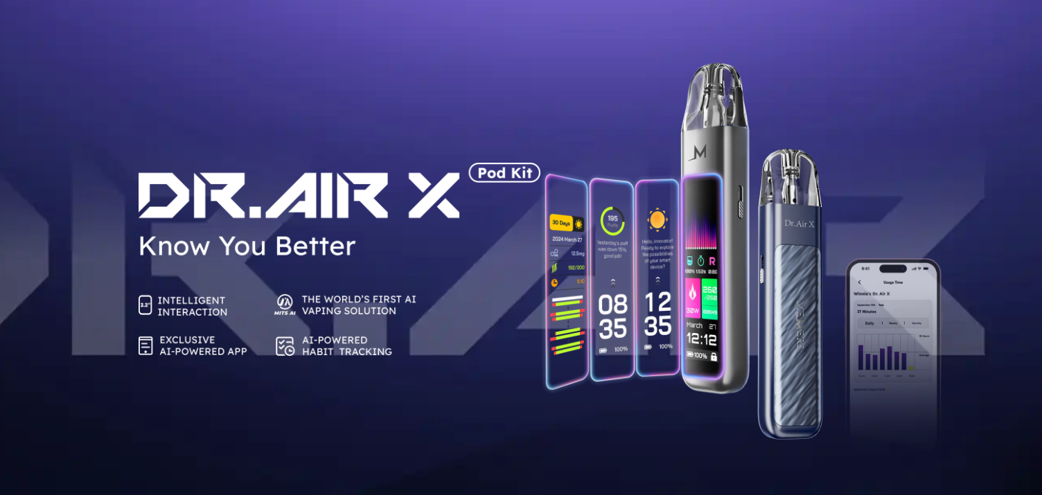 The Dr. AIR X, on the other hand, takes things to a whole new level. Its MITS AI platform continuously learns from your vaping habits to optimize wattage, airflow, and heat distribution. It ensures steady power output and flavor reproduction that stays just as rich on the last puff as it is on the first. The AI-driven atomization gives you an incredibly smooth, balanced draw every single time.