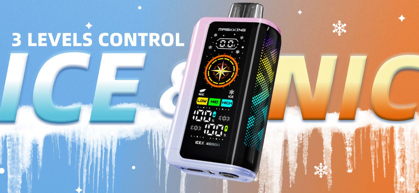 Maskking Icex 40000 comes with a Customizable Experience. Also, An unusual feature in disposables, the ICE & NIC CONTROL allows users to adjust the cooling intensity (perfect for menthol enthusiasts) and nicotine delivery. It Combining a dual-mesh coil with adjustable airflow for smooth draws, this device improves taste clarity and vapor production. The Innovative Interface: Although the smaller 850mAh battery may need more frequent charging, the dual screens make modifications easier.