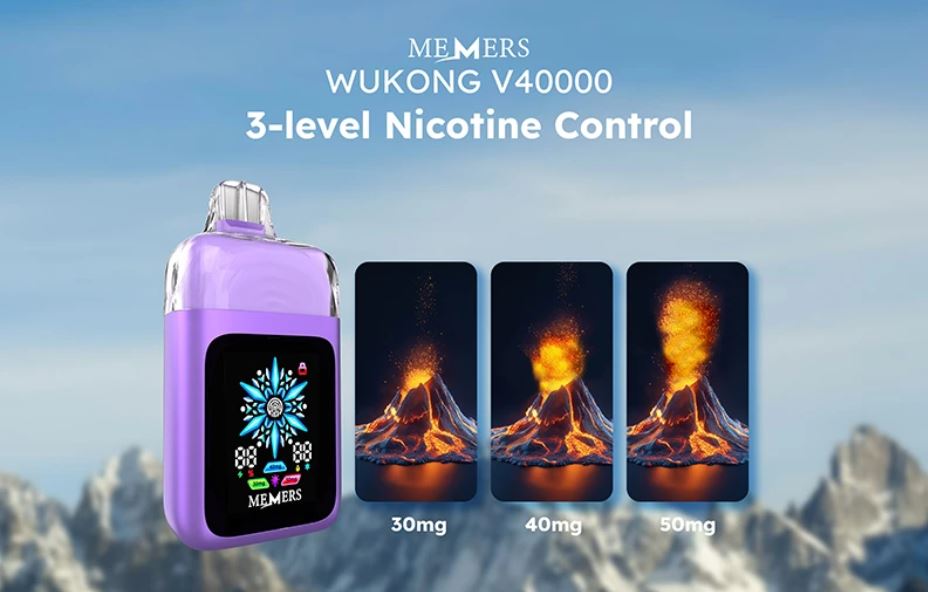 Memers WuKong V40000 has a significant feature that gives the MEMERS WuKong V40000 sophisticated iciness and nicotine strength control options is the patent-pending triple mesh coil vaporization mechanism. With MEMERS’ patented “MITS Platform,” this special coil arrangement not only enables smoother, more accurate adjustments but also elevates flavor consistency and performance to new levels.