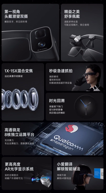 In addition to the photography function, with the built-in Snapdragon 8 core independent computing platform, Mijia Glasses camera is also an AR glasses.