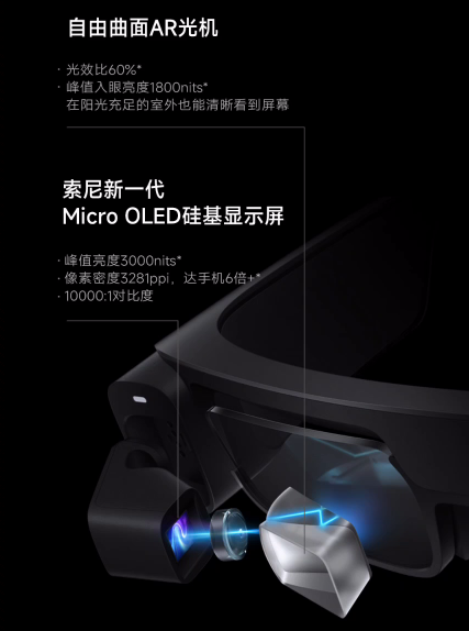 In terms of display, Mika Glasses camera adopts the combination of Micro OLED display screen and free-form optical prism, with a light efficiency ratio of 60%. It has passed the low blue light certification of German Rhein hardware, and the screen is also clear and eye protective under sunny environment.