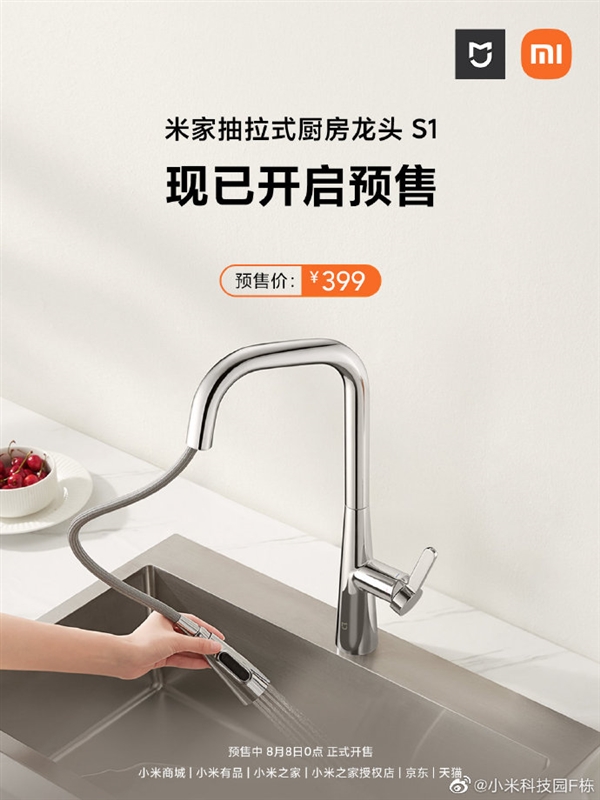 3. Mijia pull-out kitchen tap S1, priced at 399 yuan, $59.5. Features: Strong rush, brush, wash, clean the kitchen without pressure.