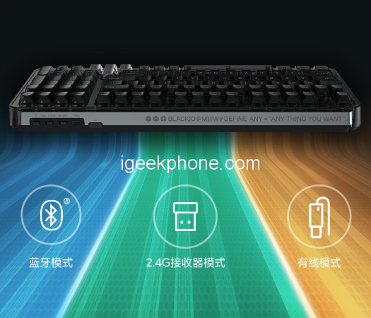 In addition to the stunning appearance, this keyboard uses a high-end ST chip as the main control solution, is equipped with Chibios real-time operating system, supports QMK open source firmware development and VIA, supports code-level custom keyboards, and can cut or increase key positions, lighting effects, Button layer definition, etc., and supports wired, 2.4G, Bluetooth three-mode connections, which can be switched freely.