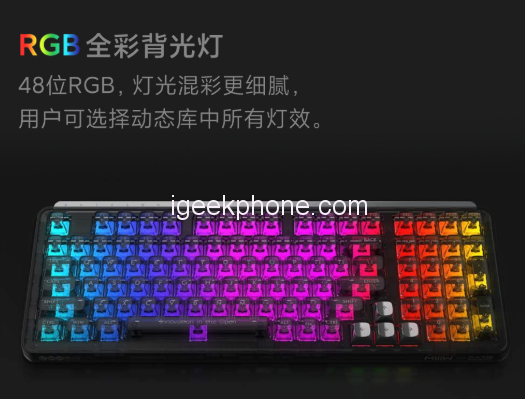 With a 48-bit RGB full-color backlight and a fully transparent MX jellyfish shaft, the cool light effect of the keyboard can be fully revealed, and it supports hot swapping and changing at will. In addition, users can also choose their favorite lighting effects in the dynamic library.