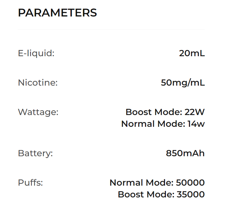 The Moti Nova is engineered for endurance. Its integrated 850mAh battery outlasts many competitors, supporting up to 50000 puffs (depending on usage) for normal mode, and boost mode up to 35000 puffs. While not the highest puff count on the market, it strikes a balance between longevity and portability. The pre-filled 20ml e-liquid contains 50mg (5%) nicotine salt e-liquid, offering a smooth yet satisfying throat hit that mimics the sensation of smoking—perfect for transitioning smokers.