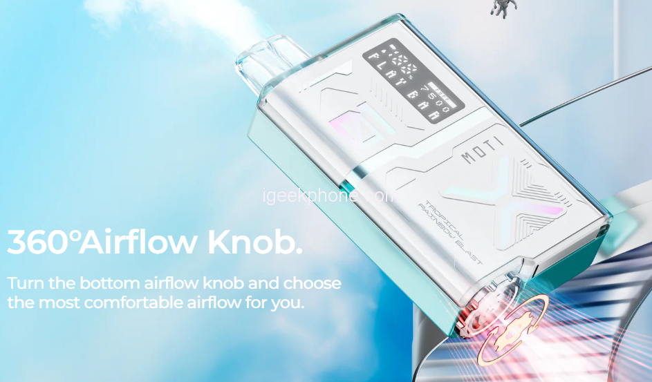 One of the standout features of the MOTI Play Bar 7500 Pod is the 360-degree airflow adjustment knob located at the bottom of the device. This allows users to customize the airflow according to their preferences, resulting in a comfortable and personalized vaping experience. The Play Bar 7500 Pod is equipped with a 700mAh battery, providing ample power for up to 7500 puffs. Additionally, the inclusion of a Type-C charging port on the side of the device ensures convenient and fast charging.