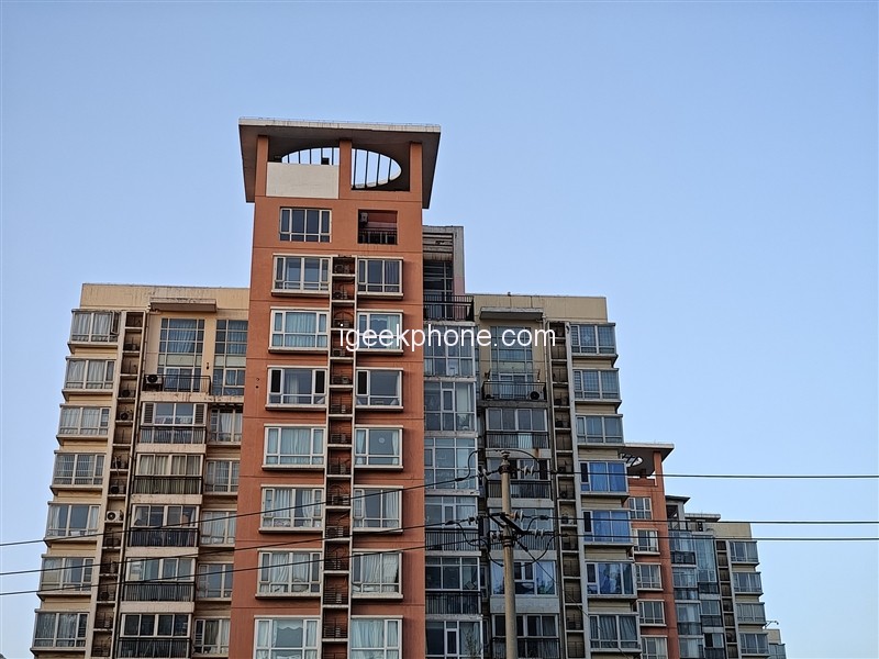 If the user wants to express the tension of the building, it is very suitable to use the 50-megapixel 117° ultra-wide-angle, which can highlight the advantages of resolution in a well-lit daytime environment and has a good imaging effect even at night.