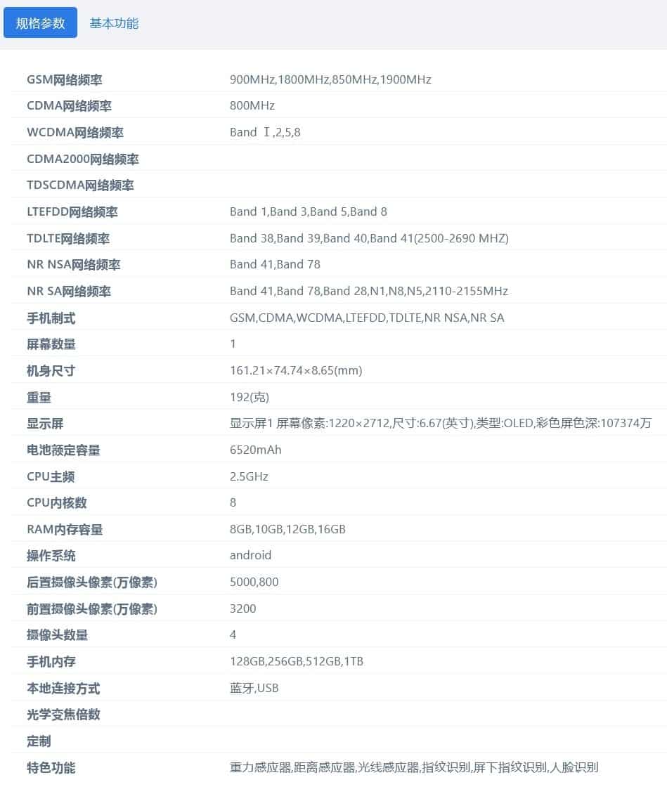 In terms of battery, the rated capacity is 6520mAh, and the typical estimated value is 6720mAh. It may also support 33W fast charging.