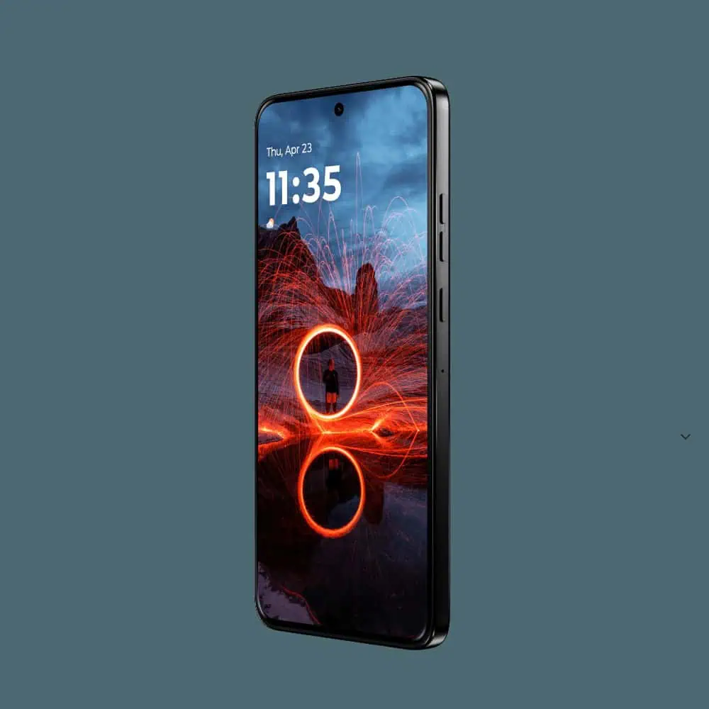 It features a straight-screen, center-punched front-facing camera, a very thin bezel, and MOTOROLA promises five years of Android OS updates and security updates.