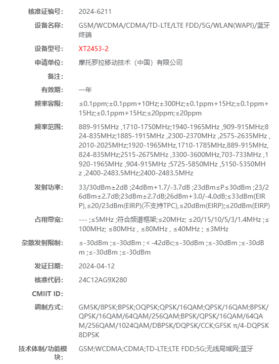 Igeekphone April 14 news, recently, a model XT2453-2 MOTOROLA’s new machine passed China’s radio approval, is expected to be Razr 50 series folding screen mobile phone.