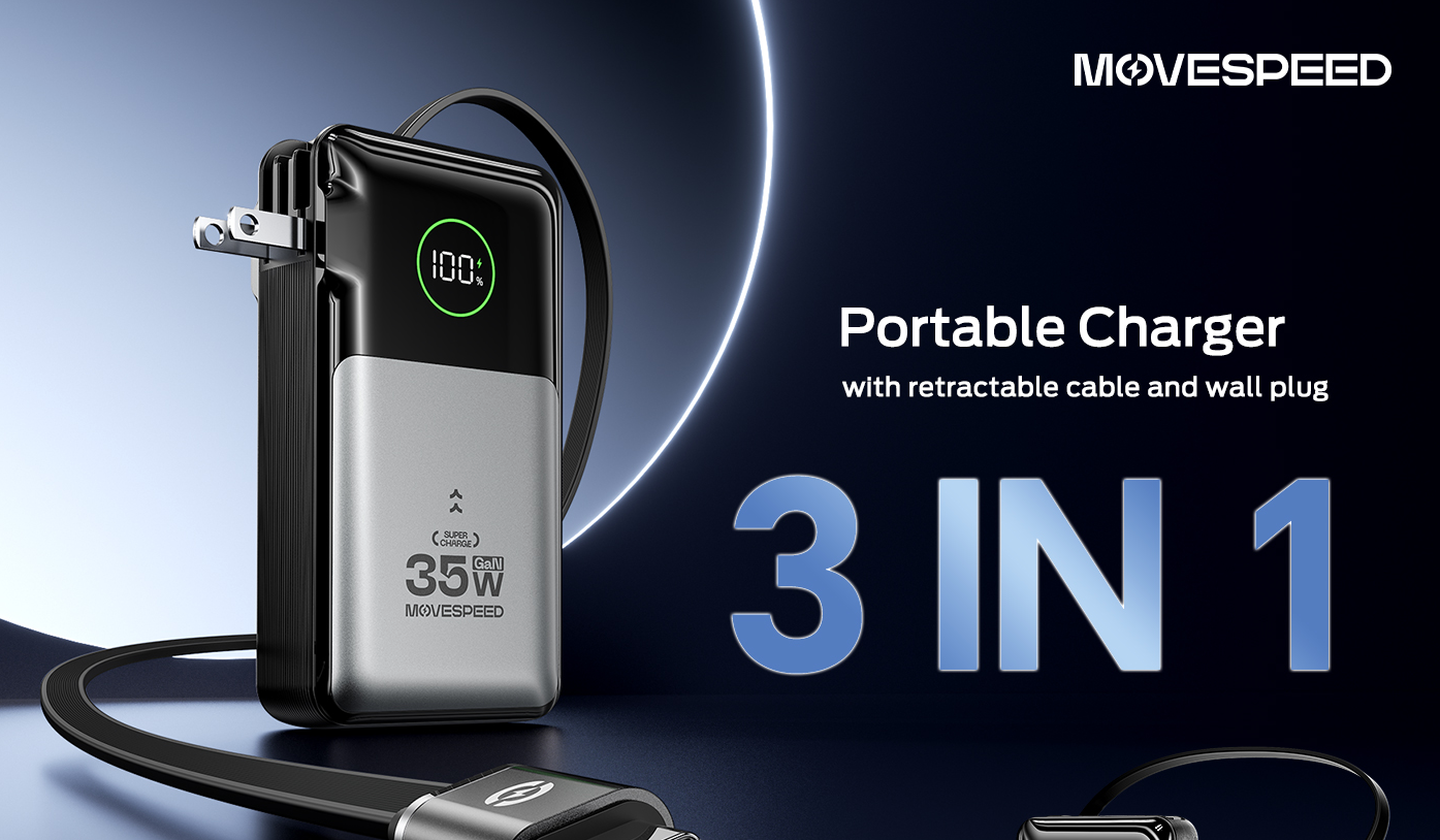 Staying connected on the go is more important than ever, and nothing kills productivity faster than a dead phone battery. That’s where the MOVE SPEED 3-in-1 Portable Charger comes in. Designed as a true all-in-one power solution, this device combines a portable power bank, a wall charger, and built-in charging cable in one sleek unit. Whether you’re traveling, commuting, or just running through a busy day, this charger makes sure you never run out of power.