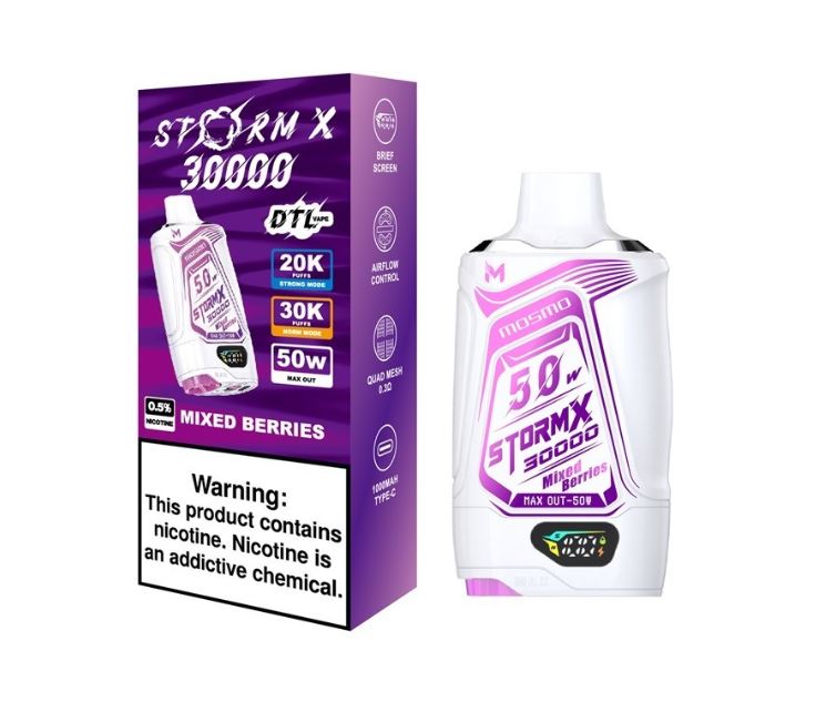 The Movement Next 30K Expendable Vape is a hero in the space of battery-fueled nonessential vapes, offering a shocking puff count. It takes unique consideration of those looking for a persevering and satisfying experience. on the other we have Mosmo Storm X 30000 Vape is a magnificent DTL pack with a fantastic 30ml vape juice, a strong 1000mAh incorporated battery, for all things considered 30000 puffs.