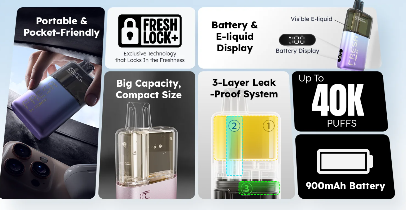 The Memers Fresa 40K, meanwhile, focuses heavily on performance and flavor. Its bold Strawberry Ice profile delivers a frozen, juicy sweetness with an icy finish — ideal for users who love refreshing fruit blends. The device supports up to 40,000 puffs and uses an 850mAh rechargeable battery designed to last through the full e-liquid capacity. Thanks to dual mesh coil technology, vapor output is thick, smooth, and consistently flavorful. It also includes intelligent vaping modes (Normal and Boost), letting users choose between extended battery life or maximum flavor intensity. The LED display enhances user control without overcomplicating the experience.