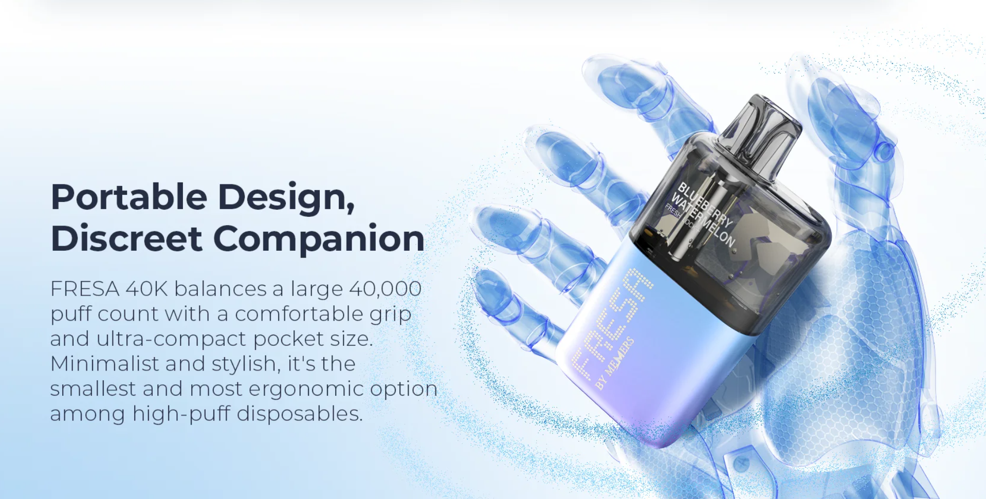On the other hand, the Memers Fresa 40K takes a more minimalistic route. Its design focuses on ergonomics rather than flashy elements. The device is comfortable to hold, straightforward to use, and built with a clean, modern aesthetic. It includes an integrated LED display showing battery and e-liquid level — a feature many disposables still lack. While less futuristic-looking than the NEXA Flex, it’s compact, tidy, and clearly built for everyday convenience.