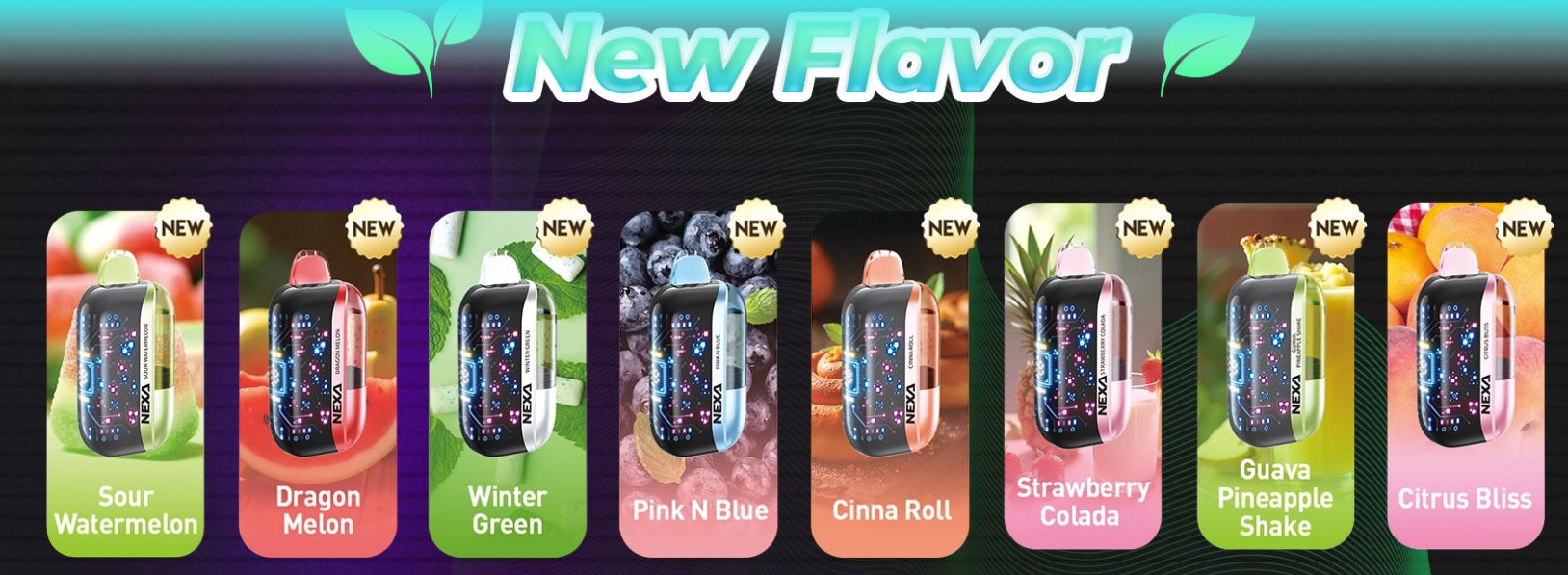 With its remarkable selection of eight new flavors that suit a wide range of palates, the Nexa Ultra Disposable Vape is revolutionizing the vaping industry. This gadget offers a smooth vaping experience thanks to its sophisticated features and elegant design. Among the eight new flavors are:
