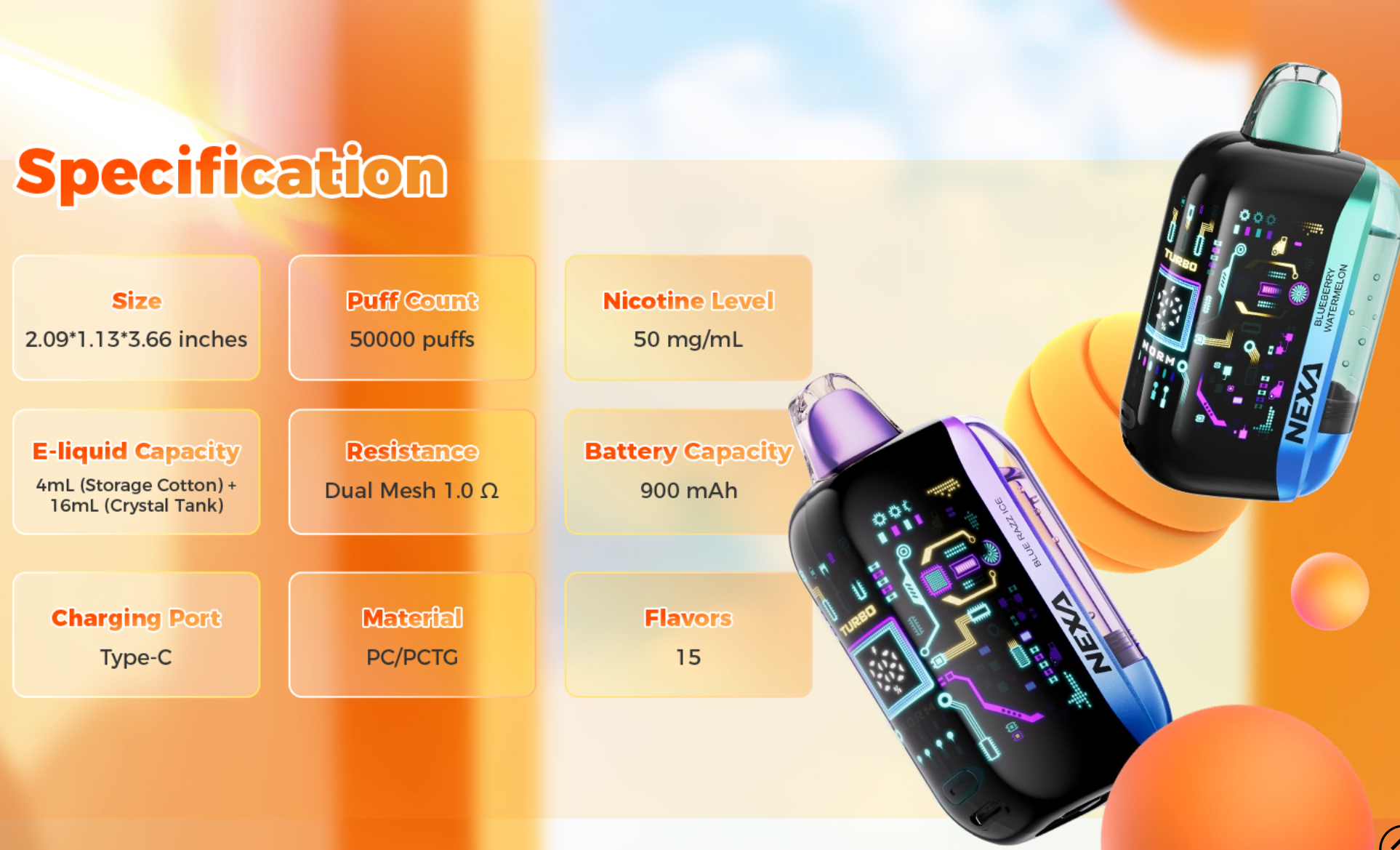 The NEXA Ultra II is a smartly designed, performance-driven vape that manages to pack a lot into a compact form. Its combination of massive puff capacity, crystal tank innovation, and reliable battery life makes it stand out in a crowded market. While the 50 mg nicotine level may be too strong for casual or light users, those who need power and endurance in their vape will find this device hard to beat. Add in the portability and variety of flavors, and the NEXA Ultra II proves to be both practical and enjoyable—an excellent choice for vapers seeking convenience without compromise.