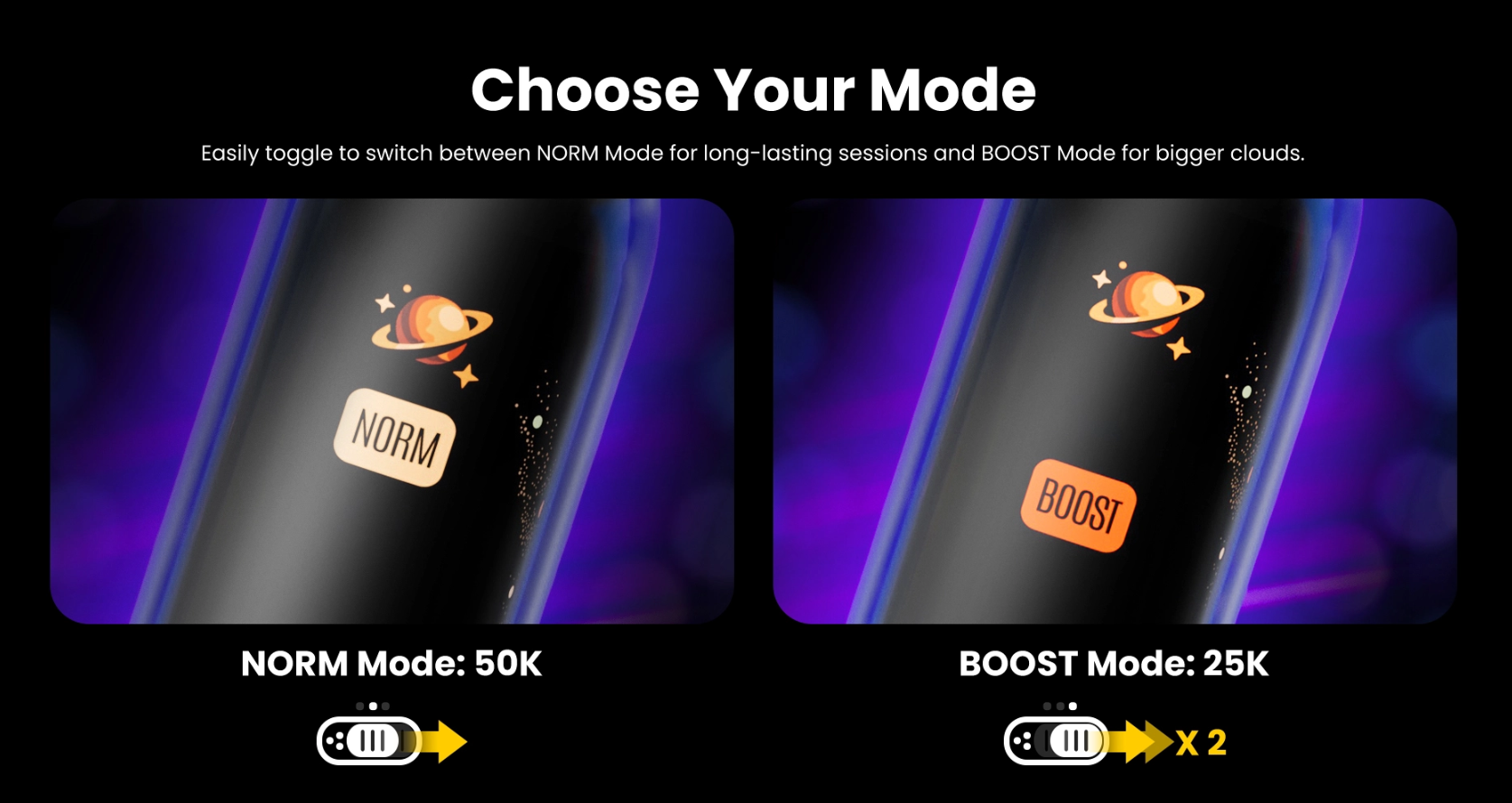 Go with Orion Bar 50K if you prioritize striking visuals, immersive display effects, and enjoy the “wow factor.” It’s a head-turner and makes vaping feel futuristic.