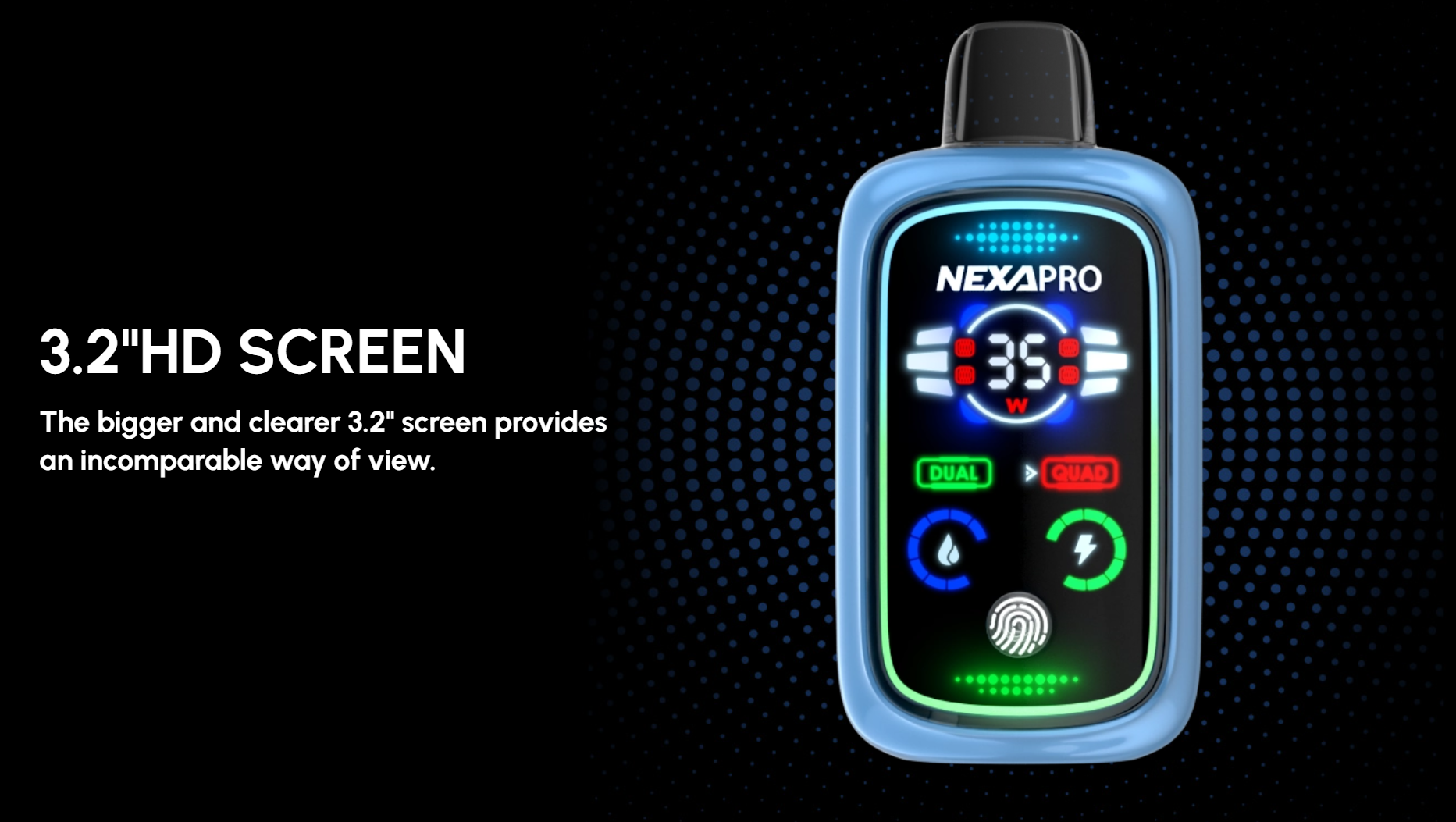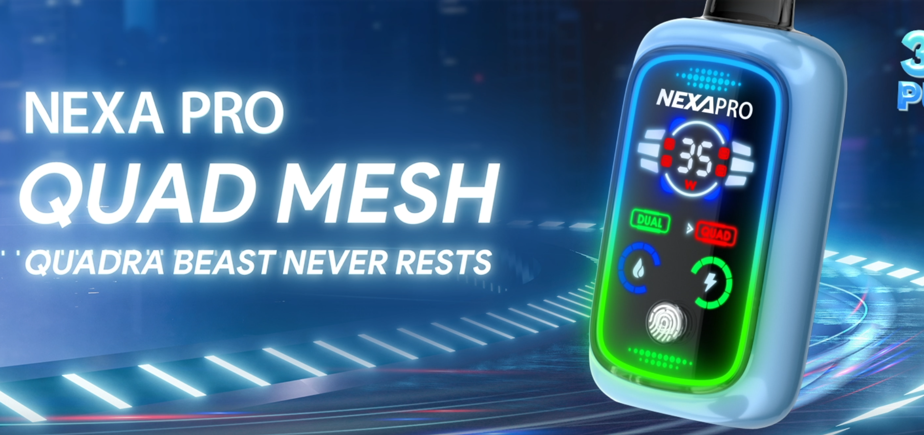 Performance-wise, NEXA Pro is built for power vapers. Its Quad Mode and Quad Mesh coil system deliver an impressive 35W output, meaning thick clouds and robust flavor. This device is targeting users who crave performance, and it delivers with smoother, denser vapor thanks to next-gen mesh atomization.