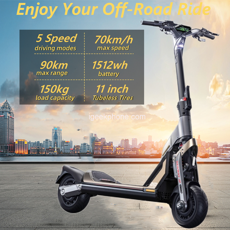 The Ninebot GT2 is an advanced electric scooter design for powerful performance and long-range rides. It boasts a 6000W double wheel motor, which delivers a maximum strong power output for smooth and effortless acceleration. The scooter also comes with a high-capacity 1512Wh-58.8V Li-ion battery; which is included in the product, offering an impressive max of 90km mileage on a single charge. This makes the Ninebot GT2 an ideal choice for commuters, adventurers, and anyone who wants a reliable and efficient electric scooter for their daily rides. With its impressive power and range, the GT2 is a top-of-the-line electric scooter that combines cutting-edge technology with a sleek design and exceptional performance.