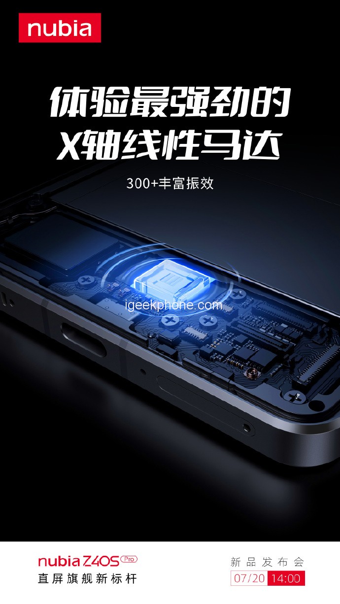 Nubia Z40S Pro’s new product launch conference will be held at 14:00 on July 20. This morning, Nubia Mobile officially brought the latest warm-up information of the Z40S Pro, confirming that the new phone is equipped with a flagship X-axis linear motor, supports 1.18Grms steady-state vibration, has a fully upgraded touch, and has 300+ rich vibration effects.