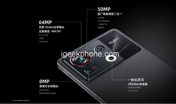 The Nubia Z40S Pro rear main camera uses a custom 64-megapixel IMX787 sensor with a 35mm equivalent focal length + f / 1.6 large aperture combination and supports optical image stabilization. To improve the capture ability of the Nubia Z40S Pro, the machine has a preset focus function. After manually setting a focus distance, you can shoot directly without focusing again in the future.
