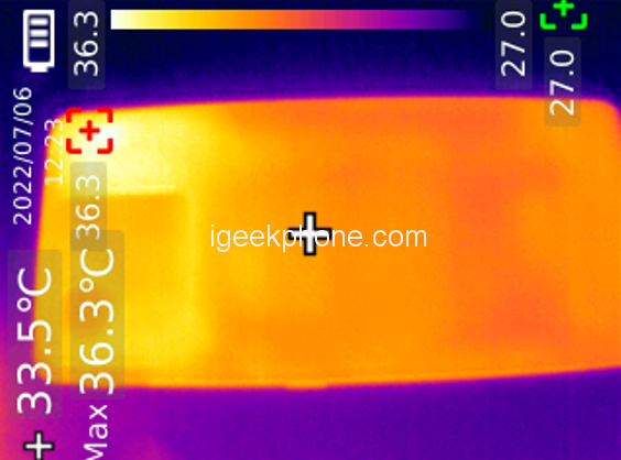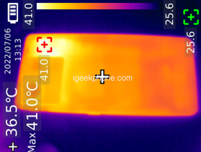 The load is higher and the natural temperature is higher, and the SOC core area of the back cover can reach 37.5 ℃.