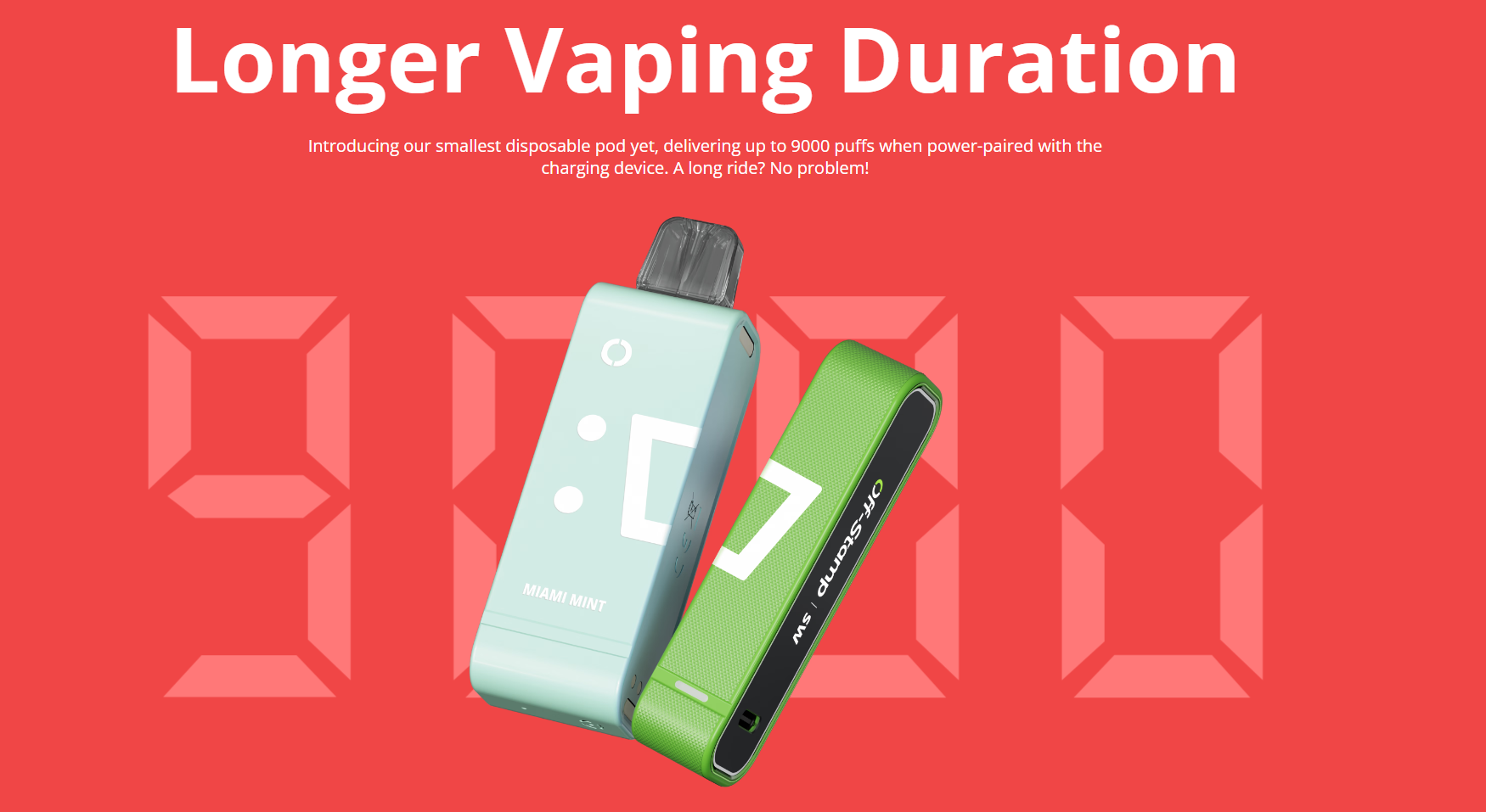 The Off Stamp SW9000 stands out with its unique, modular design that includes a 200mAh disposable pod and an 800mAh magnetized charging base. The device’s compact and sleek build makes it easy to carry, while the magnetic connection ensures a secure fit between the pod and the charging dock. This feature not only provides convenience but also allows users to recharge the pod quickly. The stylish appearance, combined with the lightweight and ergonomic design, makes the Off Stamp SW9000 comfortable to hold and use throughout the day.