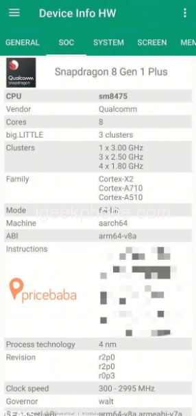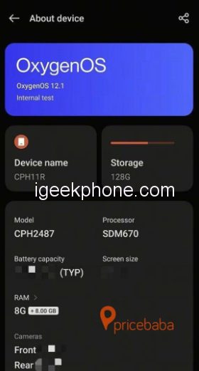 The OnePlus 11R prototype that model is CPH2487 and the processor is SDM670, which is the low-frequency version of the Qualcomm Snapdragon 8+ Gen 1 processor. It’s clocked at 3.00GHz instead of 3.2GHz on the standard edition.