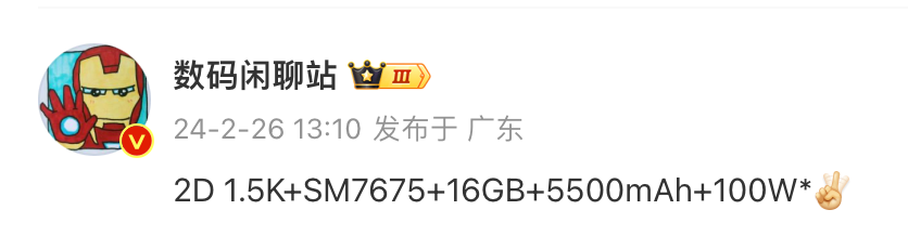 IGeekphone February 26 news, the blogger @digital chat station broke the detailed configuration information of the OnePlus Ace 3V mobile phone today.