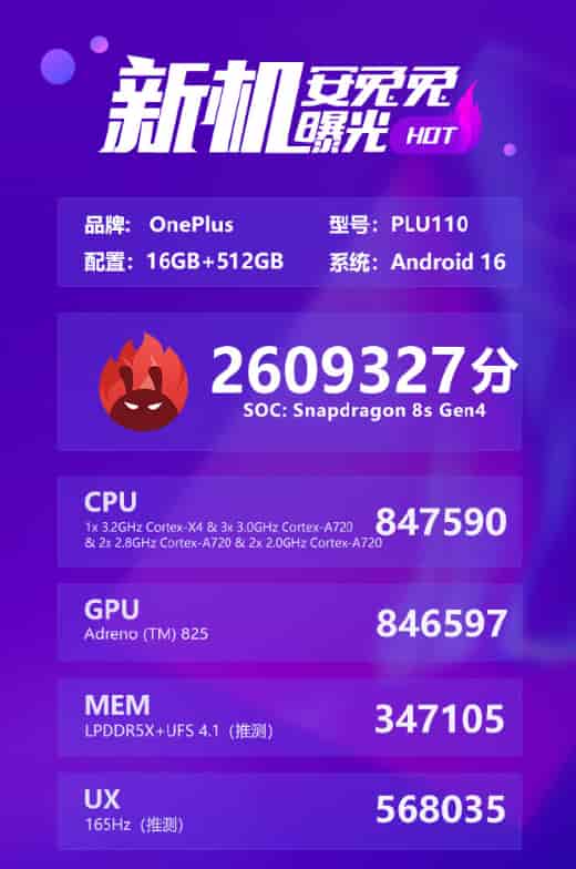 Igeekphone News, December 23rd: Today, Antutu’s official Weibo account posted that a new OnePlus phone with the model number PLU110 was discovered in the background, equipped with the Qualcomm Snapdragon 8s Gen4 chip.