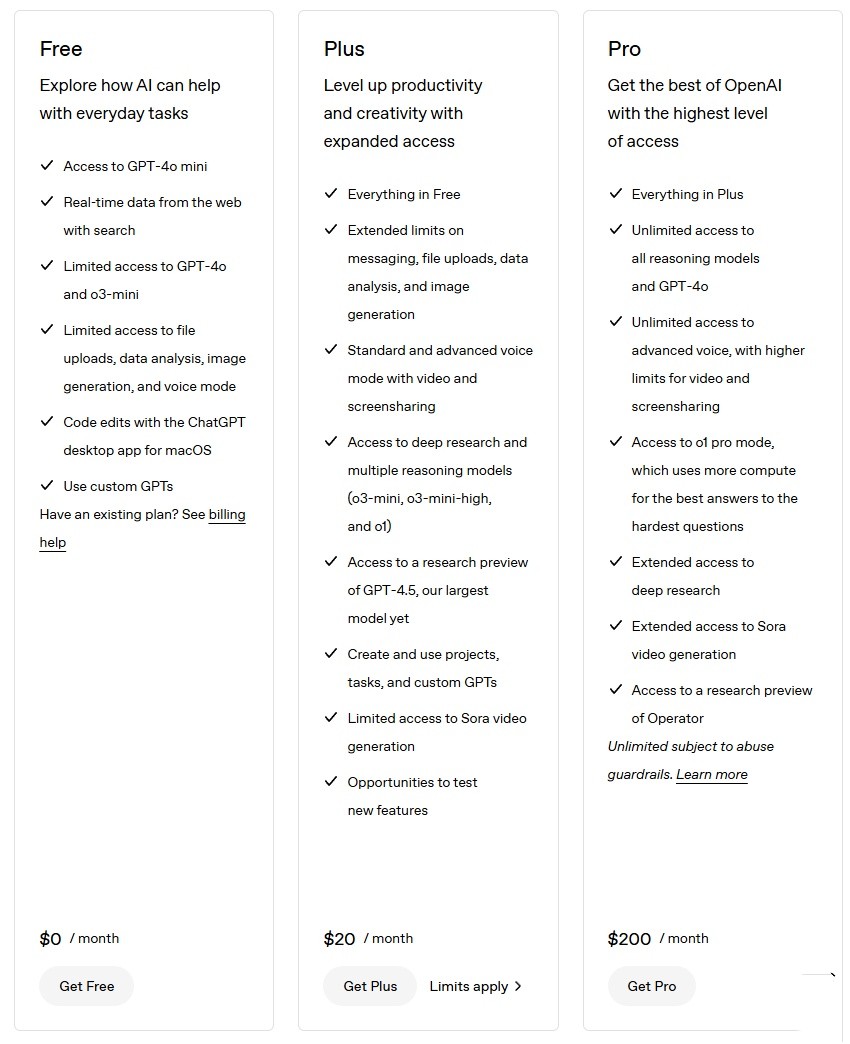 Currently, OpenAI offers a variety of paid subscription options for ChatGPT, with the basic ChatGPT Plus costing $20 per month and the Pro option costing $200 per month.