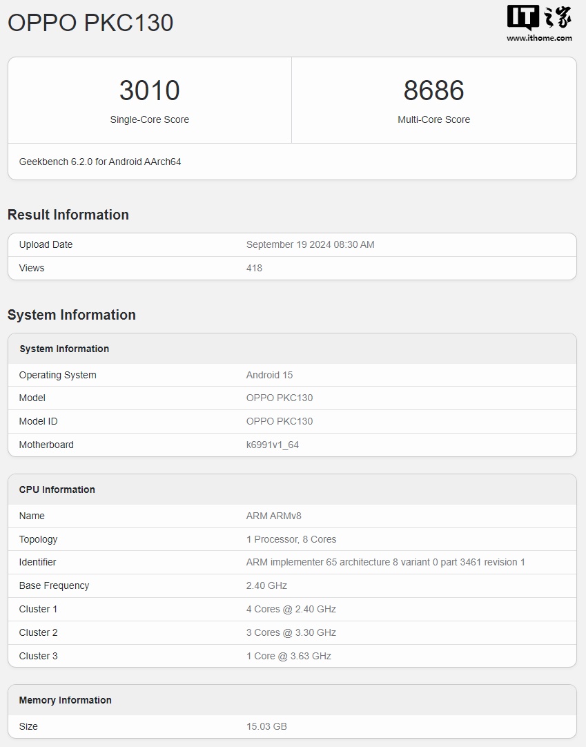 Igeekphone September 20 news, yesterday there was a model PKC130 OPPO new machine appeared on Geekbench, combined with the previous access to the network certification information is OPPO Find X8 Pro satellite communication version, The OPPO Find X8 (PKB110) equipped with Dimensity 9400 has also appeared on Geekbench a few days ago.