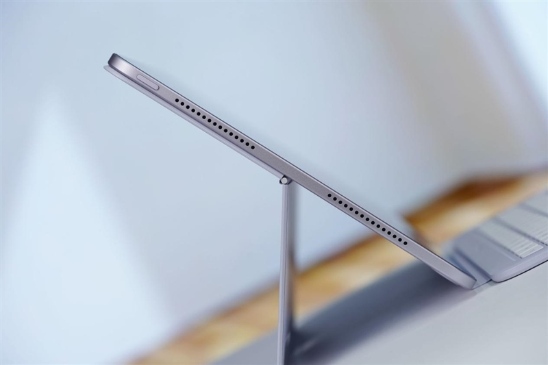 You’ll also find dual speakers and a Type-C port at the bottom, along with a small microphone. The Pad 5 measures just 5.99mm thick, giving it a slim, lightweight profile. There’s another pair of speakers on the opposite side for a true quad-speaker setup, while the power button sits neatly on top.