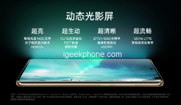 When it comes to the display, the OPPO Reno10 sets the bar high. It sports a 6.7-inch 2412×1080 centered single-hole OLED curved screen, offering a perfect blend of clarity and vividness. The device supports a remarkable 120Hz refresh rate, ensuring smooth and fluid scrolling. With a peak brightness of 950nit and support for 1.07 billion color displays, the Reno10 delivers stunning visuals and a captivating viewing experience. Additionally, both the Pro+ and Pro versions of the Reno10 series feature the dynamic light and shadow screen found in the renowned Find series. Boasting a 6.74-inch 2772 × 1240 centered single-hole OLED curved screen, these devices provide an exceptional visual feast. Similar to the Reno10, they support a 120Hz refresh rate, but their peak brightness reaches an astonishing 1400nit. The Pro+ and Pro models are also equipped with Pro XDR display technology, ensuring unparalleled color accuracy and clarity.