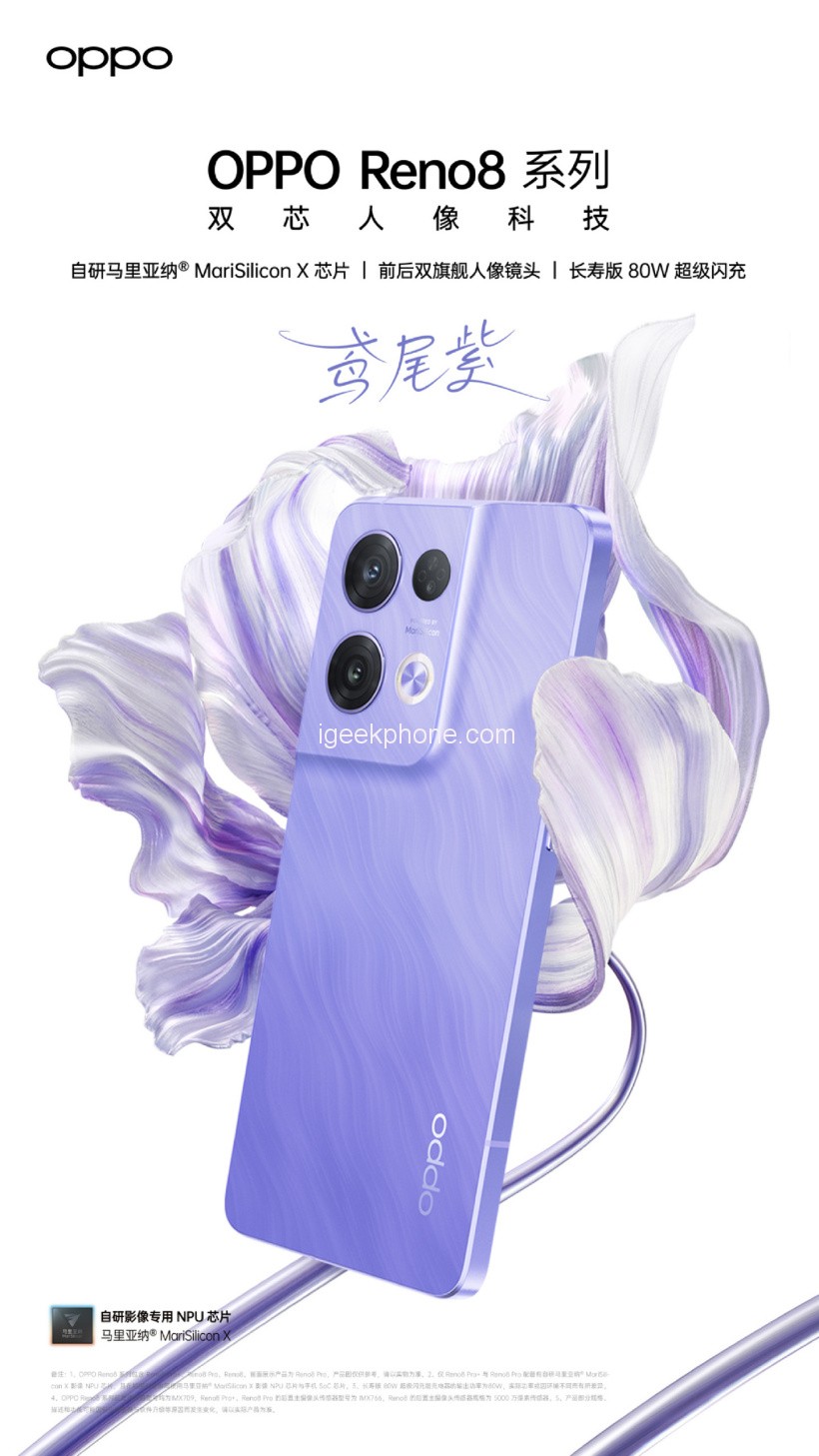 - OPPO Reno8 Iris Purple Pro 8+256GB pre-sale 3189 yuan
