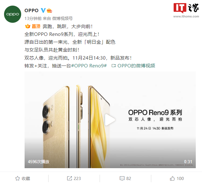 OPPO Reno9 series has officially announced and has been put on OPPO official mall, Jingdong and other platforms for booking. The new machine will be released at 14:30 on November 24th.