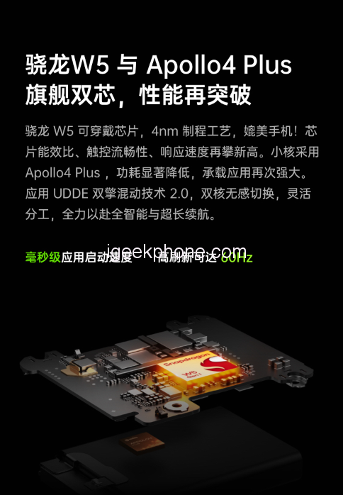 In addition to the Snapdragon W5 chip, the Watch 3 Pro also has the Apollo 4 Plus, a small-core chip jointly customized by OPPO and Ambiq, which is mainly used in low-power scenarios and effectively improves the battery life of the watch.