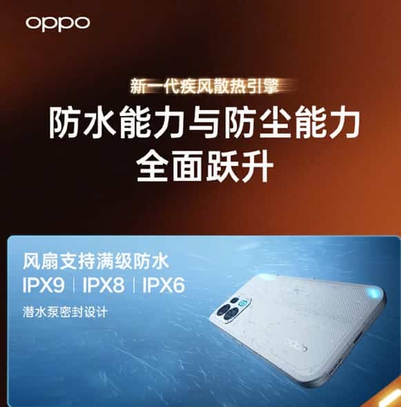 In terms of protection capabilities, the fans of the OPPO K15 Pro series adopt a submersible pump-level sealing design, supporting full-level waterproofing up to IPX6, IPX8, and IPX9 standards, and have passed military-grade sand and dust environment tests, ensuring both strong heat dissipation and high reliability.