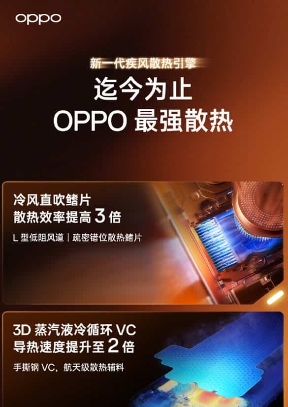 Today, OPPO announced that this series will be equipped with a new generation of “Blazing” cooling engine, which is claimed to be the most powerful cooling system of OPPO to date.