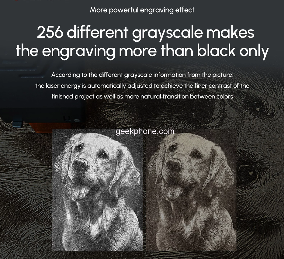 Finally, we will mention that the engraver is made of a durable aluminum profile, thanks to which its weight is only 6.5kg. As for the size of the engraving surface, the engraver will comfortably serve even the largest projects, as a space of 400 x, 400 mm is probably enough for most home projects.