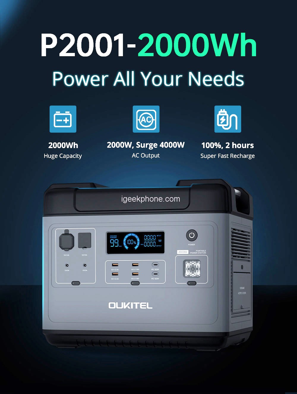 For those who want a reliable and versatile power source, the OUKITEL P2001 2000W Power Station is worth considering. It is currently available on Geekbuying for just $1149., to use Coupon code: NNNdealOUKP2001 making it an excellent investment for those who are always on the go.