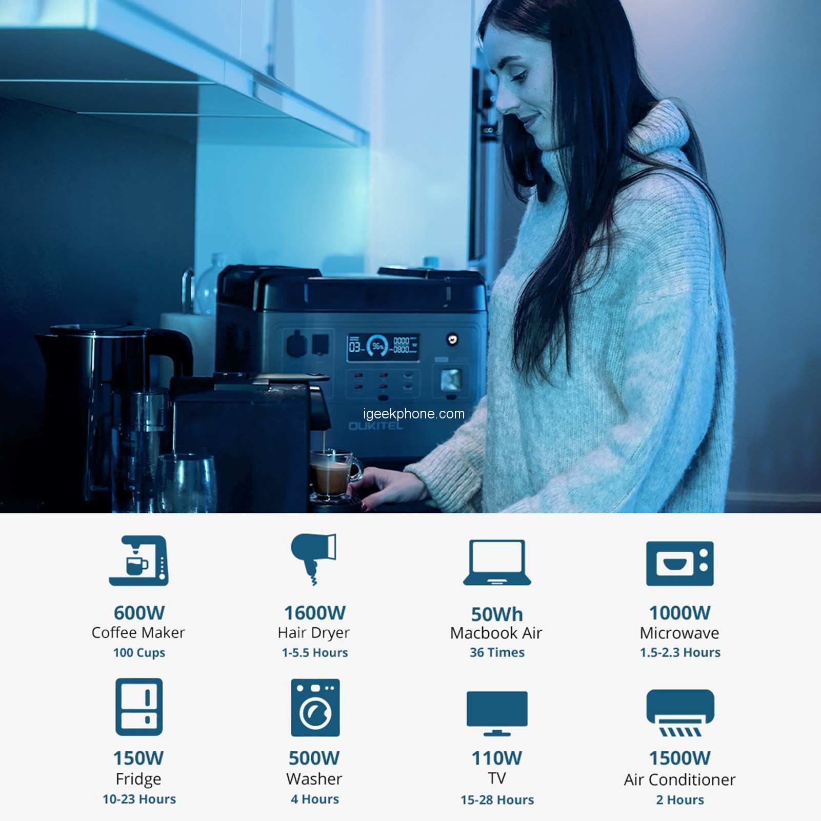 OUKITEL P2001E is a groundbreaking 2000W portable power station built for ultimate convenience and power on the go. Its compact design and remarkable capacity make it a perfect companion for outdoor adventures, camping escapades, emergencies, and beyond. Equipped with a robust lithium-ion battery, it offers a dependable and clean energy source to charge your devices, operate small appliances, and sustain essential equipment during power outages. Don’t miss out on the lowest price for the OUKITEL P2001E, available exclusively on CAFAGO. Seize this incredible deal and bid farewell to worries of ever running out of power again!