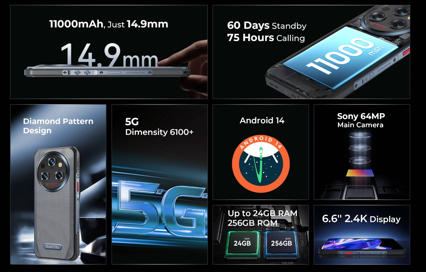 In the dynamic world of smartphones, where sleek designs and advanced features dominate the market, the OUKITEL WP35 stands out as a beacon of rugged durability and unwavering performance. Known for its innovation in rugged phones, OUKITEL introduces the WP35 as the world’s thinnest 5G rugged phone, featuring a formidable 11,000mAh battery. Tailored to meet the demands of business professionals, this smartphone combines robust functionality with a sophisticated design, making it an indispensable companion for individuals with busy schedules and adventurous spirits alike.